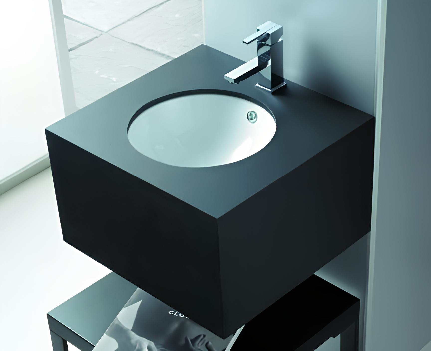 Den Unterbauwaschtisch Cadrenna empfehlen wir in ein Bad, das Form- oder Materialvorteile der alleinigen Platte als solche hervorheben möchte. Das runde Waschbecken versinkt in der Platte vollständig, mann kann es nur aus der Nähe sehen. Eine passende Waschtischarmatur, Waschtischunterplatte, Siphon und Auslauf mit Auslass können Sie in der Sektion Unser Tipp finden.